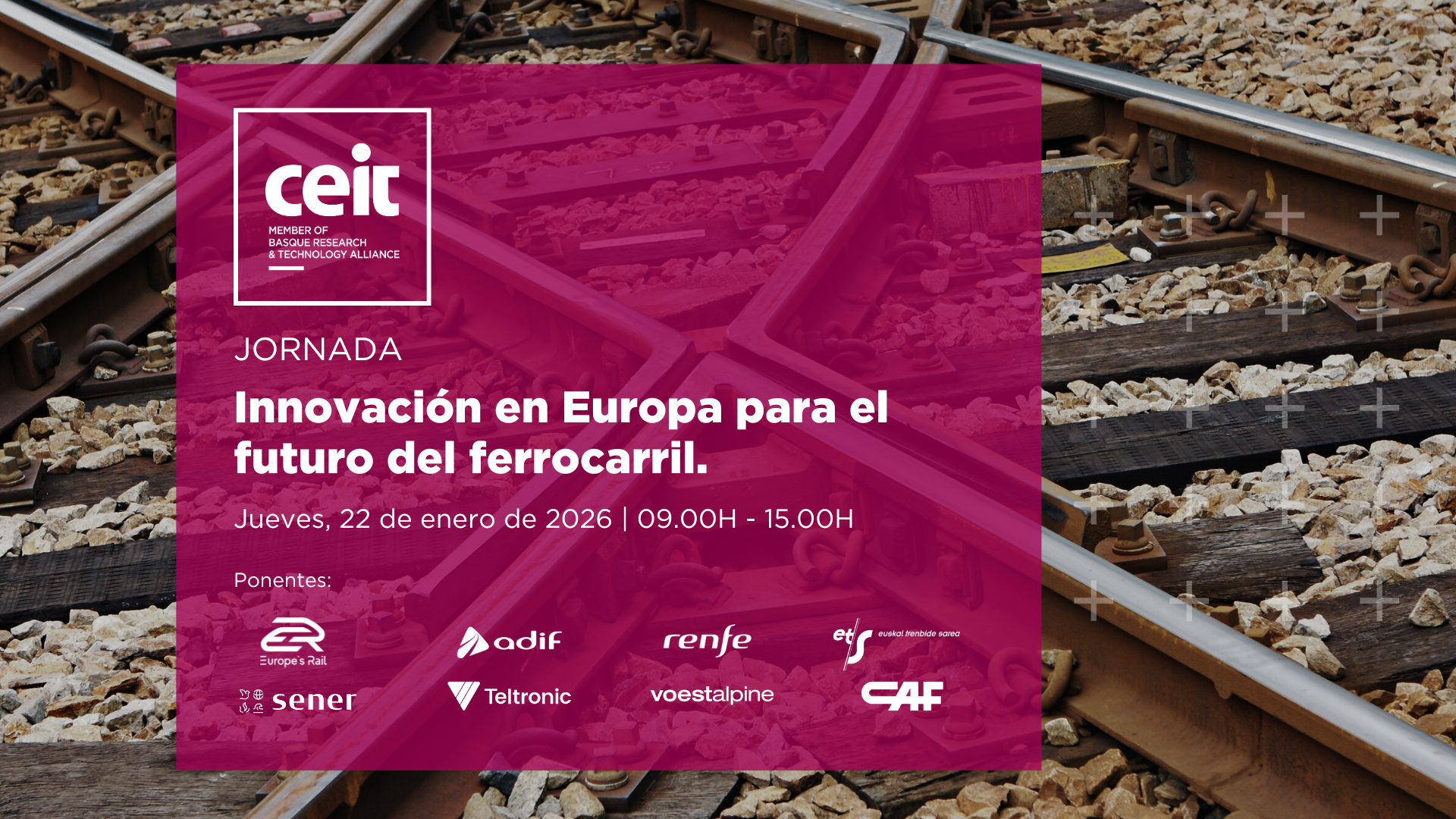 La jornada contará con ponentes confirmados de ADIF, Sener, Europe’s Rail Joint Undertaking, SPRI, CAF, Voestalpine, ETS, RENFE y Teltronic. El evento está dirigido a profesionales interesados en conocer experiencias y desarrollos europeos en innovación ferroviaria y en participar en un espacio de intercambio técnico y estratégico.